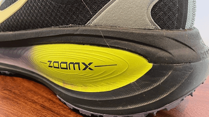 Man steht also sehr hoch in dem Schuh. Der ZoomX-Schaum besteht aus einer dünneren Schicht direkt unter dem Fuß. Darunter ist eine deutlich voluminösere Schicht des ReactX-Schaumes.